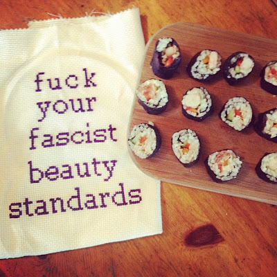 I had a craft and sushi night with my sister and our friend Kitty recently, my sis Briona is making the most amazing cross stitch above, she’s actually so good at it!