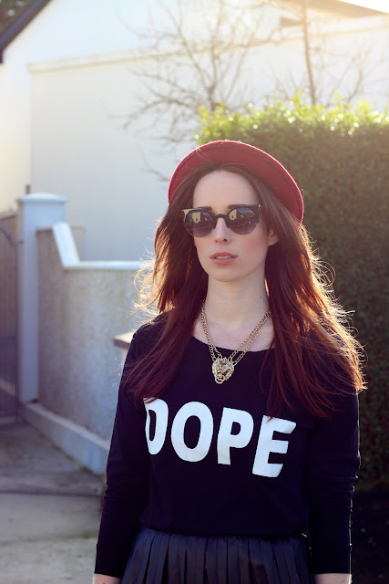 Most people know that “Dope” means cool (or weed) in American slang, but it also means “idiot” in Irish slang ~ which makes me wonder if some people who don’t get the American reference think that I’m essentially calling myself an eeejit (or maybe a dope-peddler ?!). Anyways, the thought makes me giggle a little when I wear this top, which must be a good thing, right?